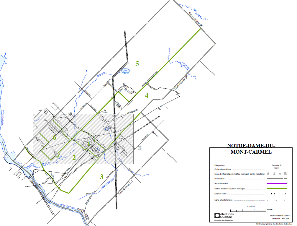 - Être domicilié à Notre-Dame-du-Mont-Carmel depuis au moins 45 jours avant le scrutin, et résider au Québec depuis 6 mois.